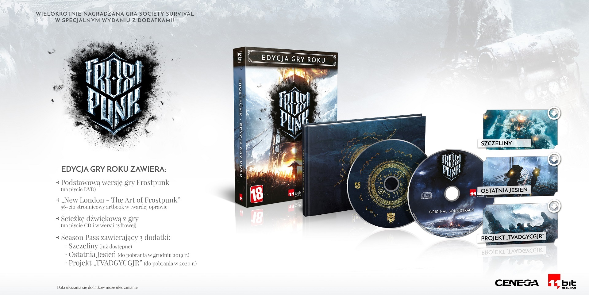 - Podstawową wersję gry Frostpunk (na płycie DVD)