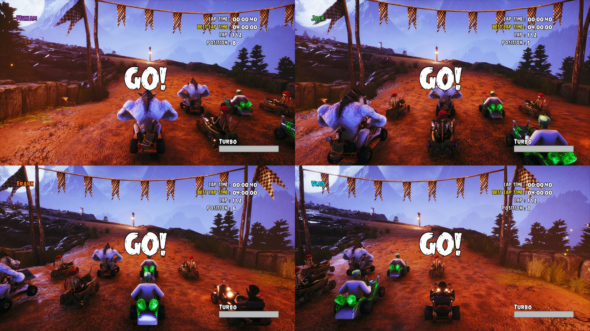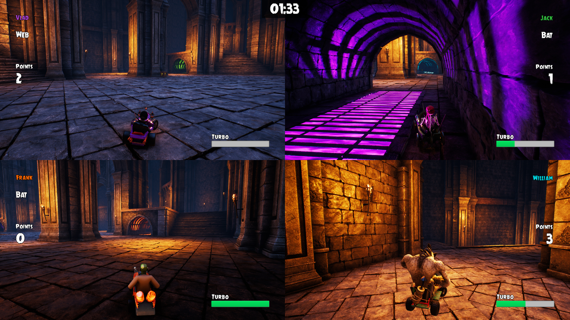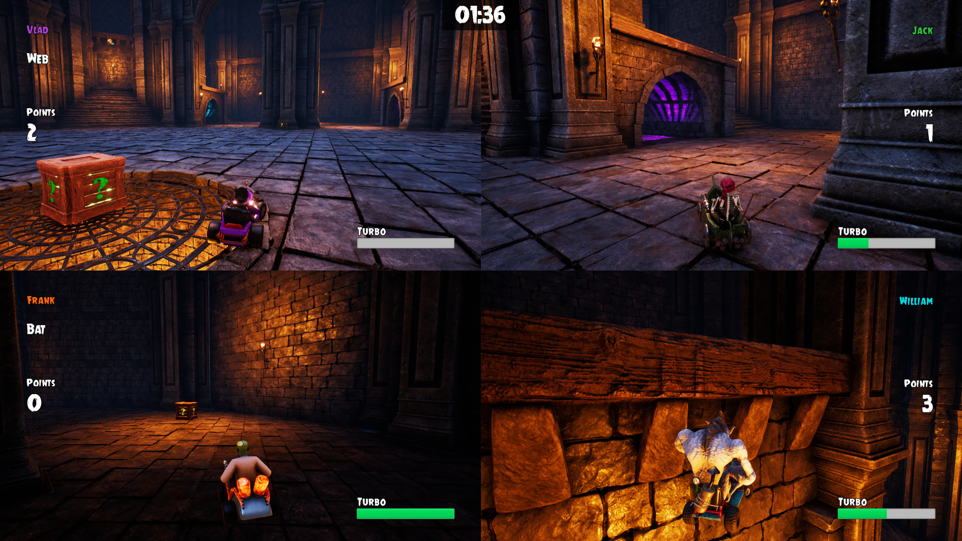 Rozgrywka pozwala nam siÄ™ sprawdzić w czterech trybach (na czas dema podczas PoznaÅ„ Game Arena 2017), w których jako jedna z zarysowanych oraz okreÅ›lonych statystykami postać staramy siÄ™ zwyciężyć w różnych wyzwaniach. SÄ… to zarówno klasyczne wyÅ›cigi, jak i mecze piÅ‚ki nożnej, hokeja oraz walki z przeciwnikami w trybie na wzór Battle Royal. Mechanika jest mocno arcade'owa oferujÄ…c jednoczeÅ›nie sporo gadżetów i puÅ‚apek, które sprawiajÄ…, że nigdy nie możemy być pewni swojej pozycji czy przewagi nad innymi graczami.