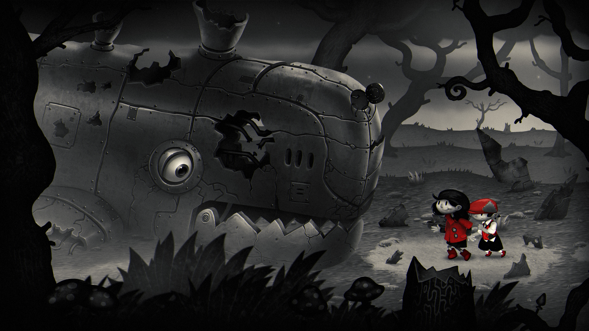 Gra oferuje czarno-białą grafikÄ™ 2D, przeplatanÄ… kolorowymi akcentami. WcielajÄ…c siÄ™ w naszych bohaterów, możemy grać raz chÅ‚opcem, raz dziewczynkÄ… albo obydwiema postaciami naraz.