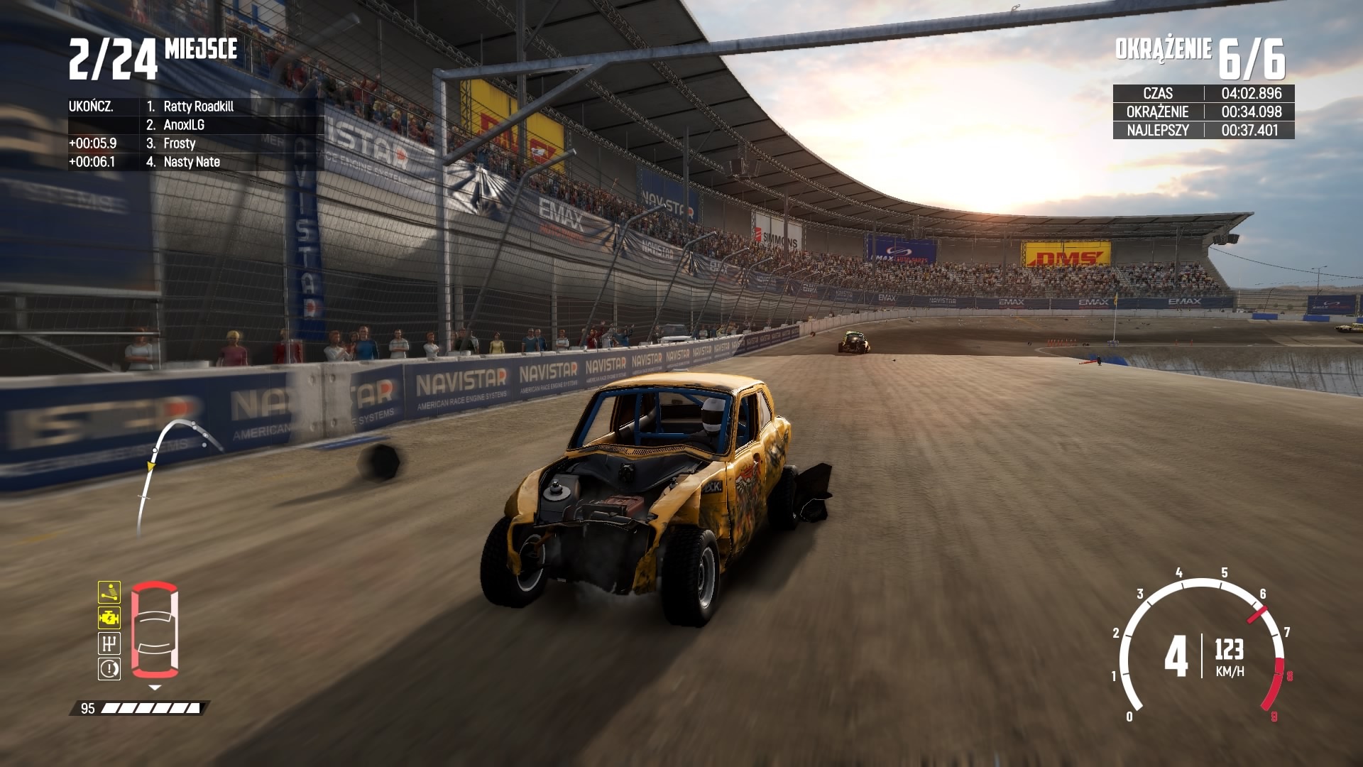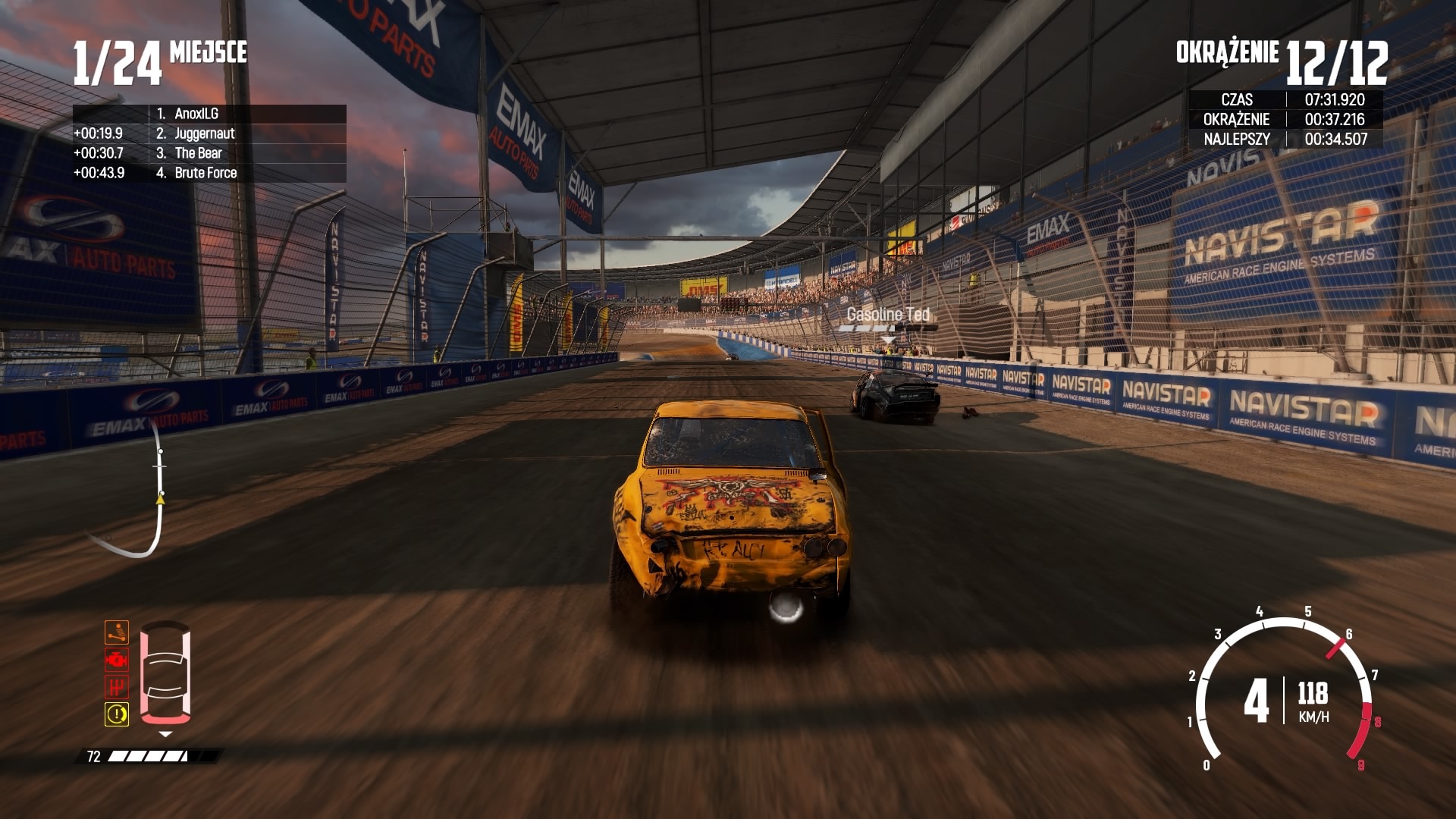 Bugbear rozpoczęło swoje prace nad tym projektem od zbudowania zaawansowanego systemu zniszczeń, który doskonale oddaje nam połączenie realizmu z masą efektów cząsteczkowych objawiających się przy okazji wszelkiej maści zderzeń. A te odbywają się bardzo często, szczególnie w środku stawki, gdzie poszczególni startujący są bardzo agresywni, a rywalizacja z nimi jest trudna, wymagająca oraz bywa także frustrująca, gdy bez umiejętności zdamy się na siłę wozu przeciwników i spadniemy poza trasę lub potężnie “pocałujemy” wystający fragment konstrukcji toru. Bez względu na cel wyścigu czy rywalizację, jego typ czy charakter, wyraźnie widać, że sztuczna inteligencja doskonale sobie radzi i przez cały czas stara się nas pozbyć z drogi lub przynajmniej usilnie i brutalnie nas spowalnia. Często może nam się zdarzyć, że odłożymy grę na bok, aby dopiero później do niej powrócić i ponownie spróbować pokonać wyścig i przeciwników stale nas dotychczas eliminujących.
